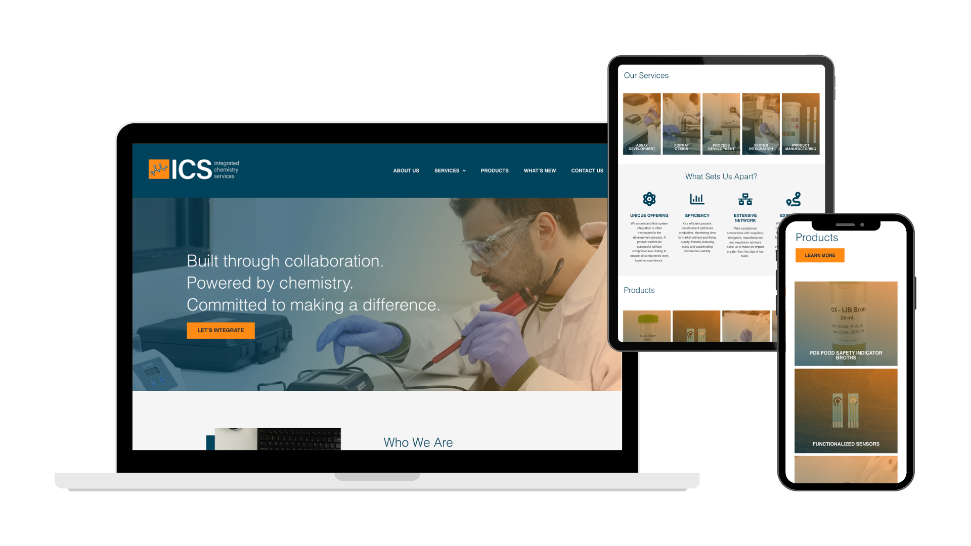 Building upon Integrated Chemistry Services' existing brand identity, including its established color palette and logo, a completely new site design and structure were created to reflect the organization’s professionalism and expertise. Client-provided content along with photos and video footage of their laboratory were thoughtfully integrated throughout the site to create an engaging and informative user experience. The website includes an all-new Homepage, comprehensive About page featuring a company timeline, dedicated pages outlining the Services offered, a Product showcase, a latest news section with dynamic, tagged content, and a Contact page with a custom-built form to facilitate inquiries.